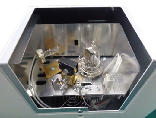 Making accurate spectrophotometer measurements requires a lamp capable of stable operation for long periods of time. UH5200 series instruments are equipped with the capability to turn the lamp on and off automatically, thus avoiding unnecessary on-time. When the lamp is turned on, the instrument monitors its output and automatically notifies the operator when this output has stabilized, indicating that measurements may now begin. Also, as a new safety provision, the UH5200 series now incorporates a sensor to detect whether the lamp chamber is open or closed during the lamp-replacement process (Figure 4).