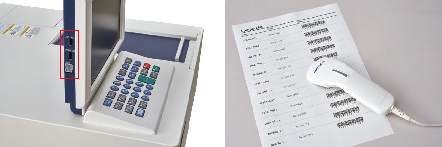 UH5200 instruments provide USB ports for connecting external devices such as keyboards, bar-code readers, or thumb drives (Figure 5). Bar-code readers may be used to streamline the process of specifying names for measurement specimens, while thumb drives (USB memory sticks) may be used for data storage.